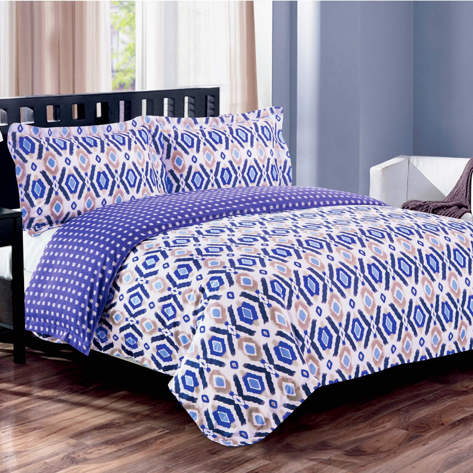A high quality, luxurious cotton duvet cover set will bring elegance and comfort to your bedroom. Featuring a 300 thread count sateen fabric, Dino Duvet Cover set offers a soft yet contemporary feel for any bedroom. The geometric design in purple and mauve colors will add freshness and sparkle to the decor of your room.
