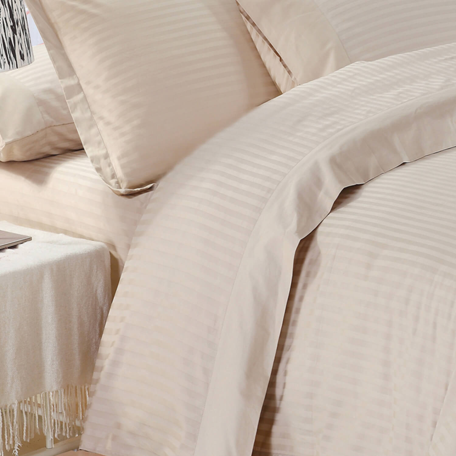 100% Egyptian cotton 500 thread count single ply yarn, dobby stripe.