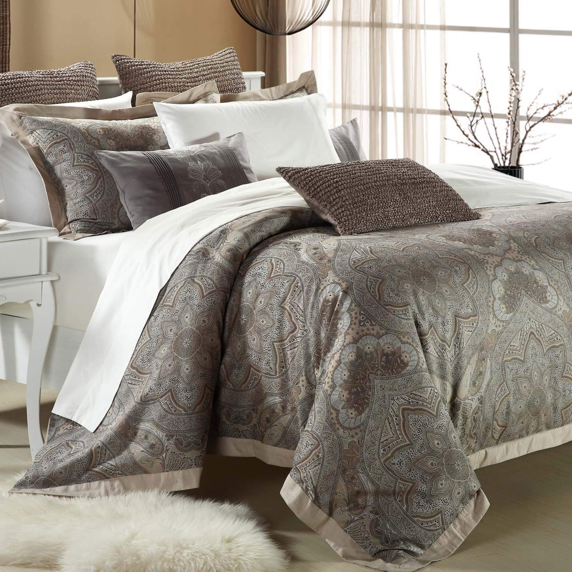 This Gabrielle duvet cover set is part of the North Home Elite Collection. Old fashion elegance is featured in soft soothing shades of grey and taupe.